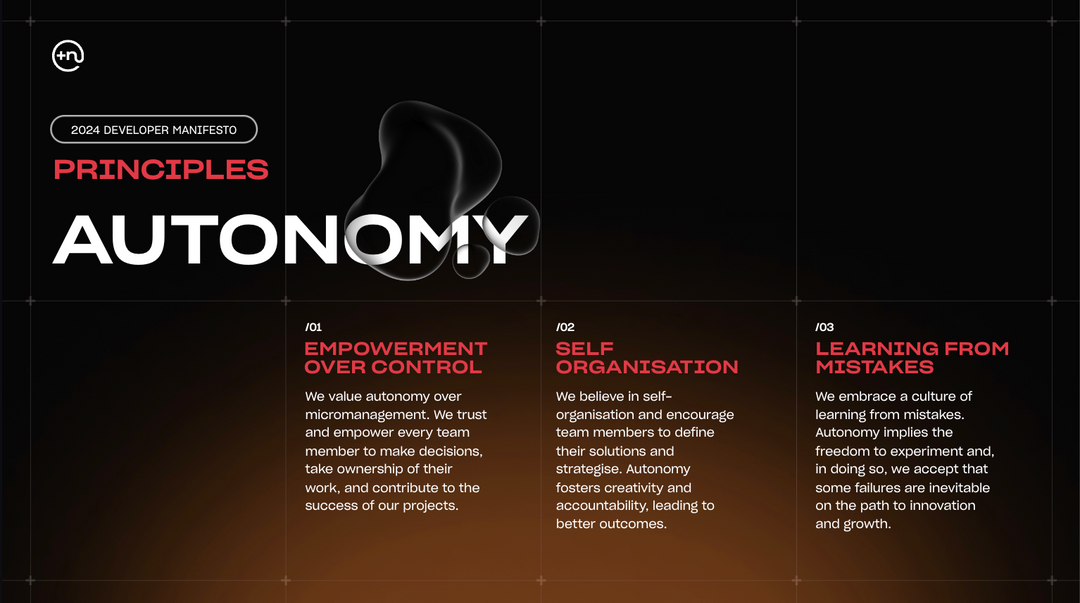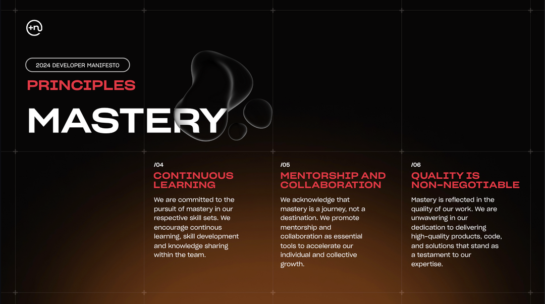 As PlusNarrative developers, we unite under a common vision of a future where autonomy, mastery, and acceleration are the guiding principles that drive our work. We believe that by embracing these values, we can create an environment where innovation thrives, excellence is the standard, and progress is unstoppable. This manifesto is our commitment to shaping that future.