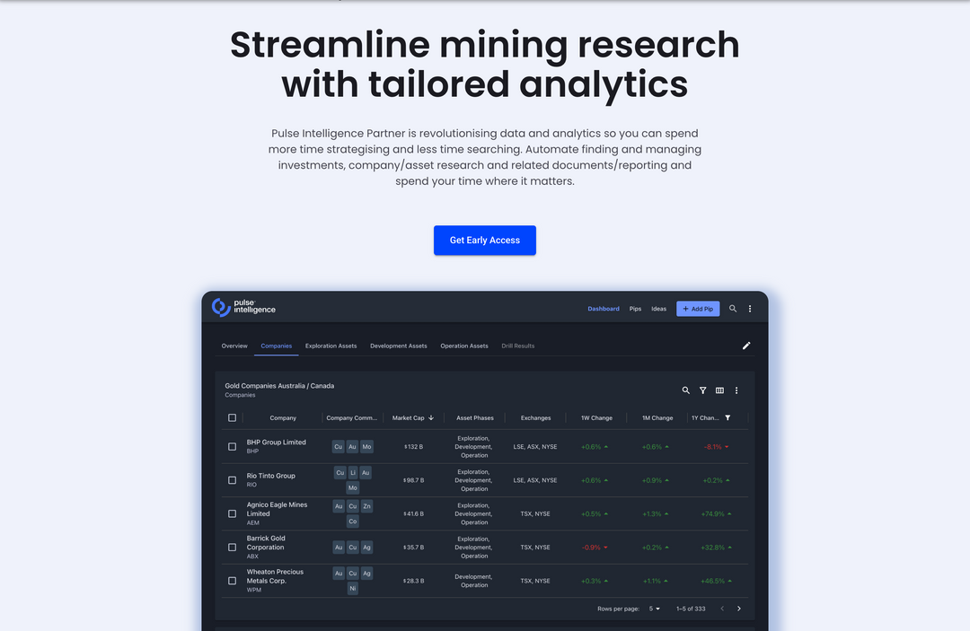 Pulse Intelligence Partner (PIP) is revolutionising data, analytics, and automation for the natural resources and commodities industry. Our cutting-edge, fintech-inspired platform integrates AI and machine learning to automate investment management, asset research, and documentation. By distilling vast amounts of market information, we enable executives and financiers to spend more time strategising and less time searching for data.
