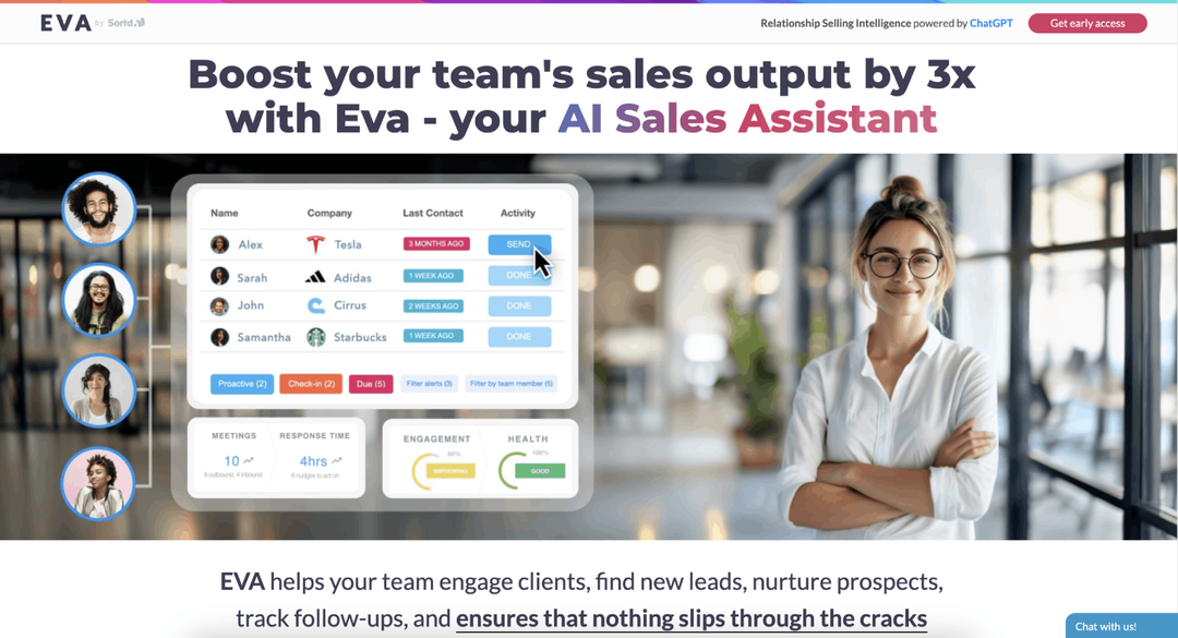 <img src="https://i.ibb.co/Tg5gJHN/Sortd-Site.png" alt="Sortd-Site" border="0" width="450">Eva is an AI-powered sales assistant using an agentic approach to revolutionize B2B sales workflows. Leveraging an advanced AI agentic approach, Eva autonomously handles lead research, personalized outreach, and follow-ups. It integrates seamlessly with existing systems, acting as